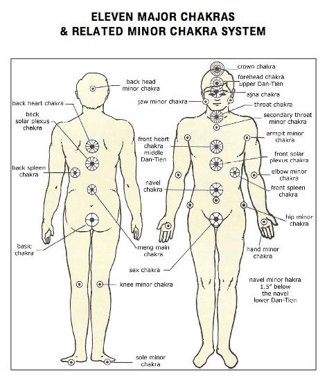 Also Kashmiri Shivaism knows a further channel with front-chakras such as nabhi- chakra (navel), hrit (heart), kantha kupa (throat), and bhrumadya who are a theme in Tantra.