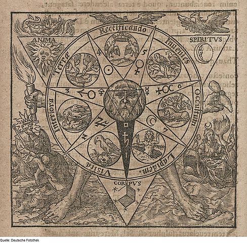 This not uniformly illustrated process passes periodically cycles of the four (5) element-principles or of 7 planetary cycles (Mercury, Saturn, Jupiter, Luna, Venus, Mars, Sol - please look at the Basilius -picture at the bottom).